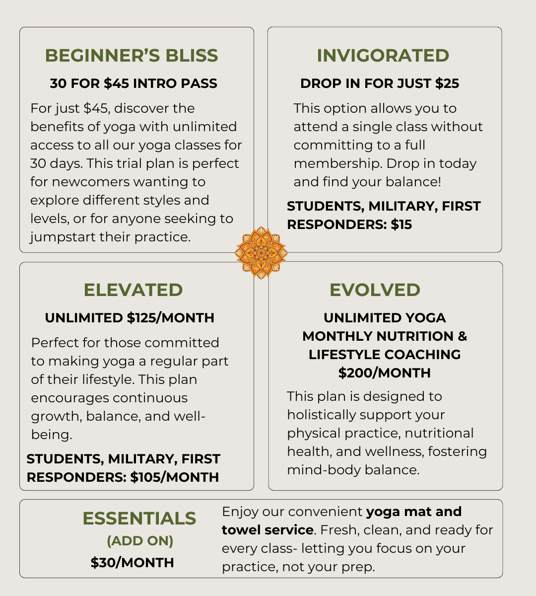 Thank you for supporting our teachers, our space, and the beautiful energy of our shared practice.